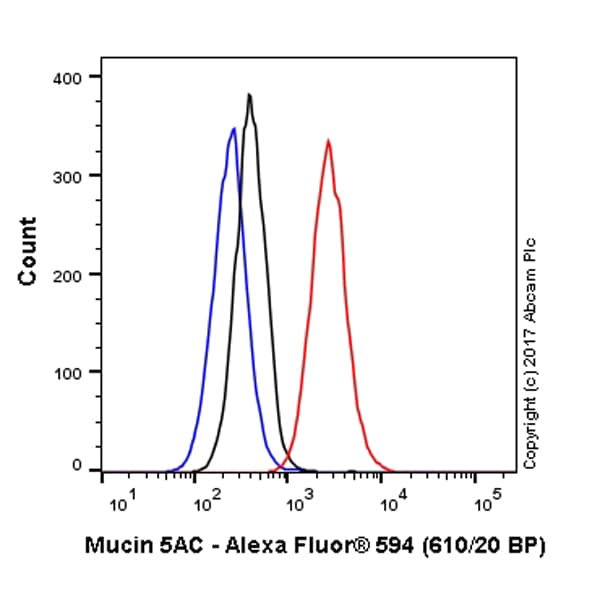Rabbit Recombinant Monoclonal Mucin 5AC antibody - conjugated to Alexa Fluor® 594. Suitable for Flow Cyt and reacts with Human samples. Cited in 1 publication.