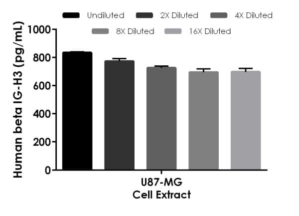 Human Beta IG-H3 ELISA Kit is a single-wash 90-min SimpleStep ELISA® for the quantitative measurement of Human Beta IG-H3 in Cell culture extracts, Heparin Plasma, Citrate plasma, Cell culture supernatant, Serum, EDTA Plasma samples.