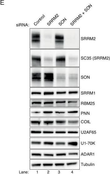 Rabbit Polyclonal SRRM1 antibody. Suitable for WB, ICC/IF and reacts with Human samples. Cited in 4 publications. Immunogen corresponding to Recombinant Fragment Protein within Human Serine/arginine repetitive matrix protein 1 aa 850 to C-terminus.