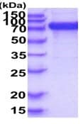 Recombinant Human SIGLEC6 protein (Fc Chimera His Tag) is a Human Fragment protein, in the 27 to 347 aa range, expressed in Baculovirus infected insect, with >90% purity, < 1 EU/µg endotoxin level and suitable for SDS-PAGE.