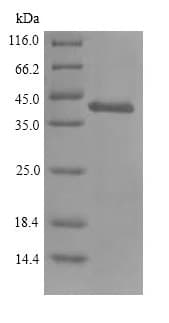 Recombinant Mouse Glutaminyl cyclase protein (His tag) is a Mouse Full Length protein, in the 36 to 362 aa range, expressed in Mammalian, with >90% purity and suitable for SDS-PAGE.