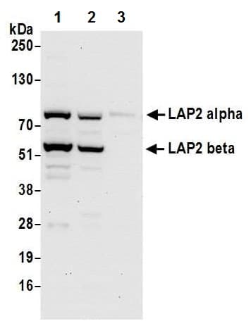 Rabbit Polyclonal LAP2 alpha antibody. N-terminal. Suitable for IHC-P, IP, WB and reacts with Mouse, Human samples.
