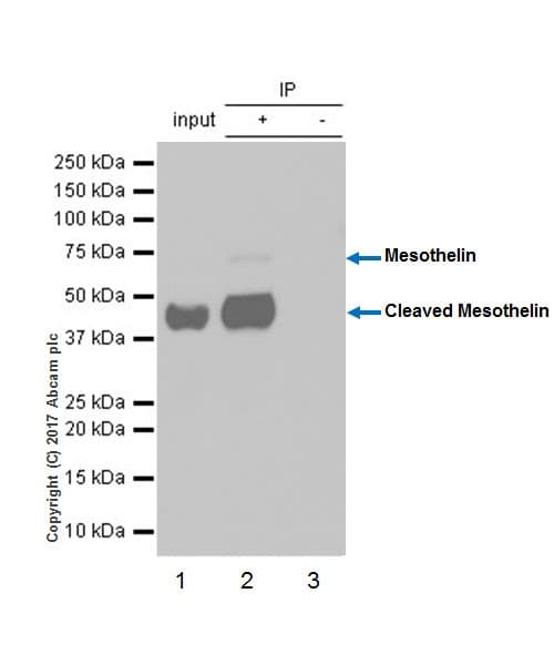 Rabbit Recombinant Monoclonal Mesothelin antibody. Carrier free. Suitable for IP, Flow Cyt, WB, IHC-P and reacts with Human samples.