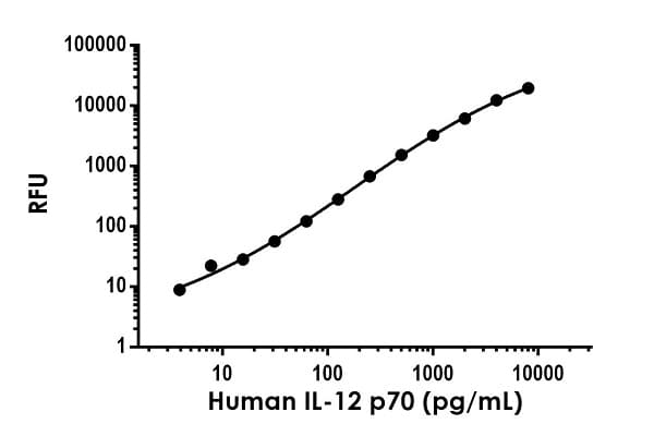 Human IL-12 p70 ELISA Kit, Fluorescent is a single-wash 90-min SimpleStep ELISA® for the quantitative measurement of Human IL-12 p70 , Fluorescent in Heparin Plasma, Citrate plasma, Cell culture supernatant, Serum, EDTA Plasma samples.