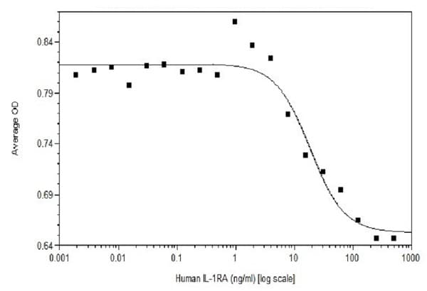 Recombinant IL-1RA protein (Animal Free) is a Human Full Length protein, in the 26 to 177 aa range, expressed in Escherichia coli, with >=95% purity, <= 1 EU/µg endotoxin level and suitable for SDS-PAGE, FuncS.