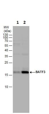 Rabbit Polyclonal BATF3 antibody. Suitable for IP, WB and reacts with Human samples. Cited in 1 publication. Immunogen corresponding to Recombinant Full Length Protein corresponding to Human BATF3.