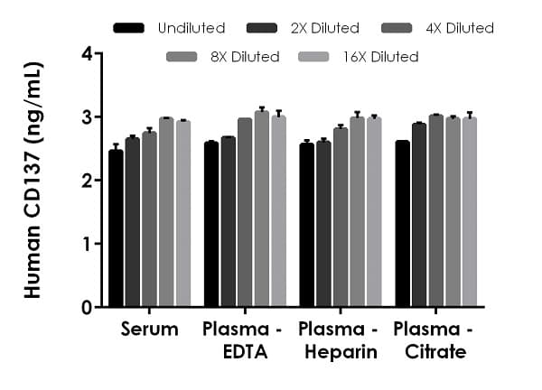 Human CD137 ELISA Kit is a single-wash 90-min SimpleStep ELISA® for the quantitative measurement of Human CD137 in Cell culture extracts, Heparin Plasma, Citrate plasma, Cell culture supernatant, Serum, EDTA Plasma samples.