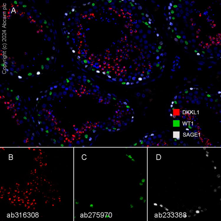 Rabbit Recombinant Monoclonal SAGE1 antibody. Suitable for IHC-P, mIHC and reacts with Human samples.