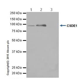 Rabbit Recombinant Monoclonal CSDE1/NRU antibody. Carrier free. Suitable for IP, WB, ICC/IF, IHC-P and reacts with Human, Mouse, Rat samples.