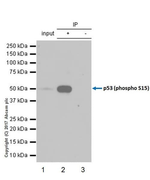 Rabbit Recombinant Monoclonal P53 phospho S15 antibody. Carrier free. Suitable for ChIC/CUTandRUN-seq, IP, ChIP, Dot, WB, ICC/IF and reacts with Human, Synthetic peptide samples.