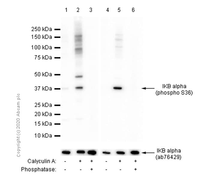 Rabbit Recombinant Monoclonal IKB alpha phospho S36 antibody. Carrier free. Suitable for WB, Flow Cyt (Intra) and reacts with Mouse, Rat, Human samples.