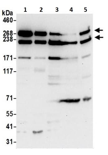 Rabbit Polyclonal Talin 1 antibody. Suitable for IP, WB and reacts with Human, Mouse samples. Immunogen corresponding to Synthetic Peptide within Human TLN1 aa 2450 to C-terminus.
