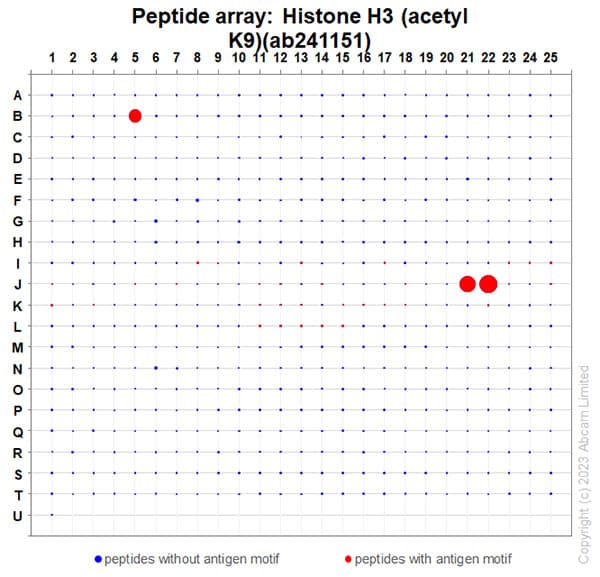 Rabbit Recombinant Monoclonal H3 acetyl K9 antibody. Suitable for WB, PepArr and reacts with Mouse, Human, Synthetic peptide samples.
