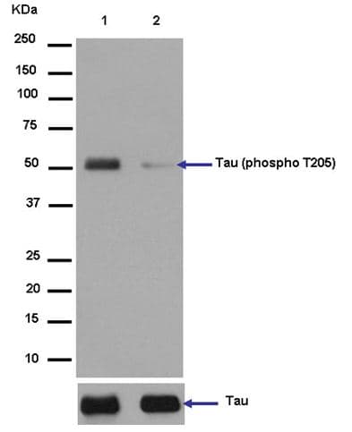 Rabbit Recombinant Monoclonal TAU phospho T205 antibody. Carrier free. Suitable for Dot, WB and reacts with Synthetic peptide, Human samples.