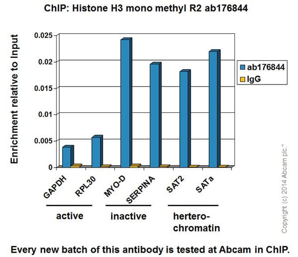 Rabbit Recombinant Monoclonal H3 mono methyl R2 antibody. Carrier free. Suitable for ICC/IF, ChIP, WB, PepArr and reacts with Human, Mouse samples.