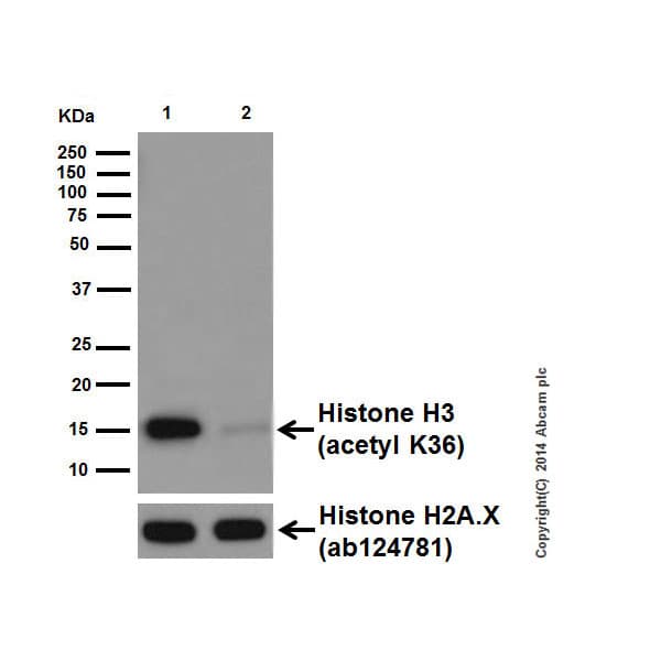 Rabbit Recombinant Monoclonal H3 acetyl K36 antibody. Carrier free. Suitable for ICC/IF, WB, PepArr, IHC-P and reacts with Human, Mouse, Rat samples.