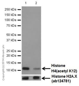 Rabbit Recombinant Monoclonal Histone H4 acetyl L12 antibody. Carrier free. Suitable for WB, PepArr, ICC/IF, Flow Cyt (Intra), IHC-P and reacts with Mouse, Human, Rat samples.