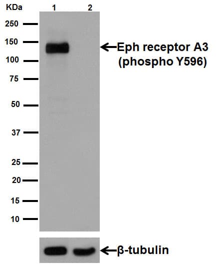 Rabbit Recombinant Monoclonal Eph receptor A3 phospho Y596 antibody. Carrier free. Suitable for WB and reacts with Human samples.