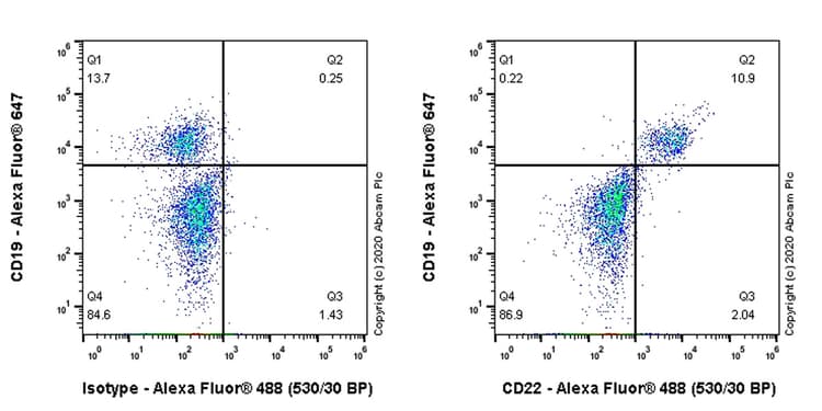 Mouse Recombinant Monoclonal CD22 antibody. Suitable for Flow Cyt, ICC/IF and reacts with Human samples.