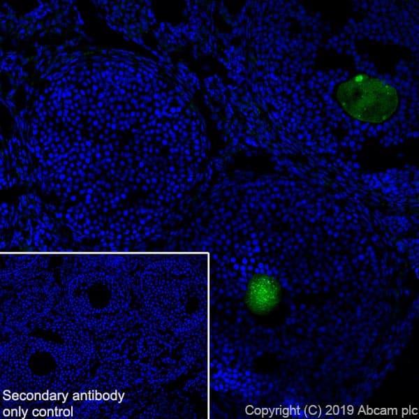Rabbit Recombinant Monoclonal GDF 9 antibody. Suitable for IHC-Fr, IHC-P and reacts with Mouse, Rat, Human samples. Cited in 1 publication.