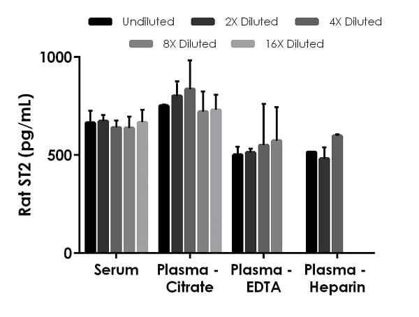 Rat ST2 ELISA Kit (IL1RL1) is a single-wash 90-min SimpleStep ELISA® for the quantitative measurement of Rat ST2 (IL1RL1) in Heparin Plasma, Citrate plasma, Serum, EDTA Plasma samples.