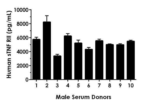 Human sTNF RII ELISA Kit (TNFRSF1B) is a single-wash 90-min SimpleStep ELISA® for the quantitative measurement of Human sTNF RII (TNFRSF1B) in Urine, Heparin Plasma, Citrate plasma, Cell culture supernatant, Serum, EDTA Plasma samples.