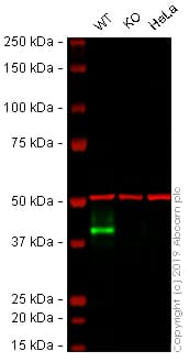 EPCAM KO cell lysate available now. KO validated by Immunocytochemistry, Next Generation Sequencing, Western blot. Free of charge wild type control included. Knockout achieved by CRISPR/Cas9 X = 2 bp deletion Frameshift: 99.58%.