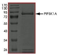 Recombinant human PIP5K1 alpha/PIP5K1A protein (Tagged) is a Human Full Length protein, in the 1 to 562 aa range, expressed in Baculovirus infected Sf9, with >90% purity and suitable for SDS-PAGE, FuncS.