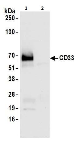 Rabbit Recombinant Monoclonal CD33 antibody. Suitable for IP, WB, IHC-P and reacts with Human samples. Immunogen corresponding to Synthetic Peptide within Human CD33 aa 300 to C-terminus.