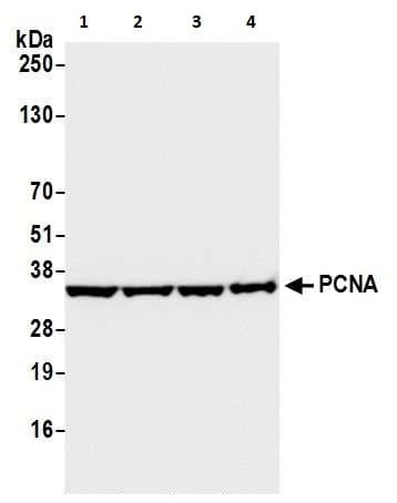 Mouse Monoclonal PCNA antibody. Suitable for IP, WB, IHC-P, ICC/IF, Flow Cyt and reacts with Mouse, Human samples. Cited in 2 publications. Immunogen corresponding to Recombinant Full Length Protein corresponding to Rat Pcna.