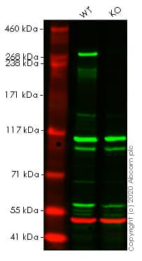 USP9X KO cell line available to order. KO validated by Western blot. Free of charge wild type control provided. Knockout achieved by using CRISPR/Cas9, 1 bp deletion in exon 9 and 1 bp insertion in exon 9.
