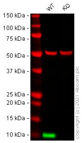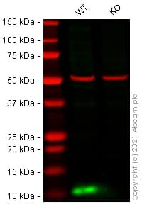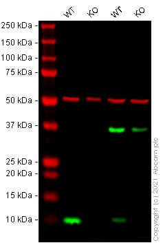 S100A4 KO cell line available to order. KO validated by Western blot. Free of charge wild type control provided. Knockout achieved by using CRISPR/Cas9, 1 bp insertion in exon 2 and 5 bp deletion in exon 2.
