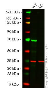 PTPN11 KO cell line available to order. KO validated by Western blot. Free of charge wild type control provided. Knockout achieved by using CRISPR/Cas9, 1 bp insertion in exon 1 and 2 bp deletion in exon 1.