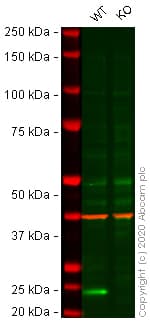 CDKN1A KO cell line available to order. KO validated by Western blot. Free of charge wild type control provided. Knockout achieved by using CRISPR/Cas9, Homozygous: 1 bp insertion in exon 2.