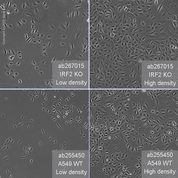 IRF2 KO cell line available to order. Free of charge wild type control provided. Knockout achieved by using CRISPR/Cas9, 1 bp insertion in exon 4 and 7 bp deletion in exon 4.