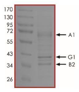 Recombinant mouse AMPK alpha 1 + AMPK gamma 1 + AMPK beta 2/PRKab2 protein (Active) is a Mouse Full Length protein, in the 1 to 271 aa range, expressed in Baculovirus infected Sf9, with >75% purity and suitable for SDS-PAGE, FuncS.