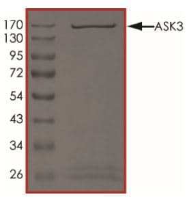 Recombinant human MAP3K15/ASK3 protein (Active) is a Human Full Length protein, in the 1 to 1313 aa range, expressed in Baculovirus infected Sf9, with >90% purity and suitable for SDS-PAGE, FuncS.