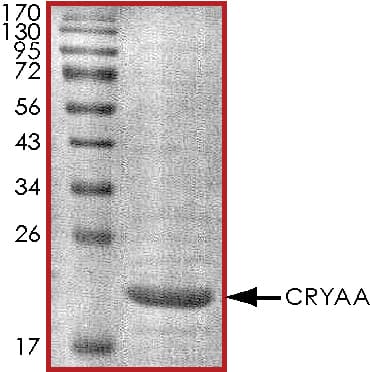 Recombinant Human alpha A Crystallin/CRYAA protein (His tag) is a Human Full Length protein, in the 1 to 173 aa range, expressed in Escherichia coli, with >95% purity and suitable for SDS-PAGE.