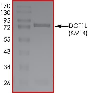 Recombinant human KMT4 / Dot1L protein (Active) is a Human Fragment protein, in the 1 to 435 aa range, expressed in Baculovirus infected Sf9, with >90% purity and suitable for SDS-PAGE, FuncS.