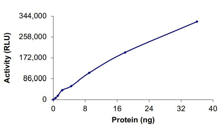 Recombinant human EGFR (A763_Y764insFHEA) protein (Active) is a Human Fragment protein, in the 668 to 1210 aa range, expressed in Baculovirus infected Sf9, with >90% purity and suitable for SDS-PAGE, FuncS.