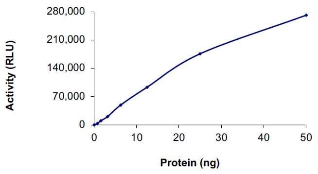 Recombinant human EGFR protein (Active) is a Human Fragment protein, in the 668 to 1210 aa range, expressed in Baculovirus infected Sf9, with >70% purity and suitable for SDS-PAGE, FuncS.