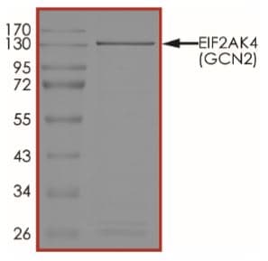 Recombinant human GCN2 protein (Active) is a Human Fragment protein, in the 192 to 1024 aa range, expressed in Sf9, with >90% purity and suitable for SDS-PAGE, FuncS.
