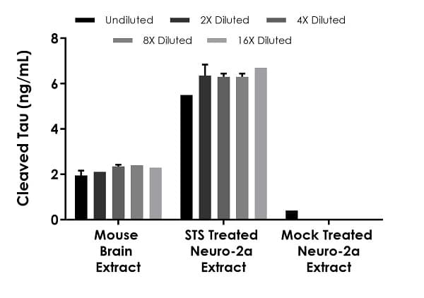 Cleaved Tau ELISA Kit (Human Asp738/Mouse Asp713) is a single-wash 90-min SimpleStep ELISA® for the quantitative measurement of Cleaved Tau (Human Asp738/Mouse Asp713) in Tissue Extracts, Cell culture media, Heparin Plasma, Citrate plasma, Cell culture supernatant, Serum, Cell Lysate, EDTA Plasma samples.
