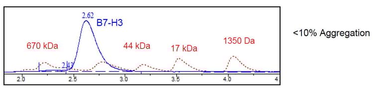 Recombinant Human CD276 protein (Tagged) (Biotin) is a Human Fragment protein, in the 29 to 466 aa range, expressed in HEK 293, with >=90% purity and suitable for SDS-PAGE.