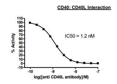 Recombinant human CD40 protein (Active) (Biotin) is a Human Fragment protein, in the 21 to 193 aa range, expressed in HEK 293, with >=90% purity, < 1 EU/µg endotoxin level and suitable for SDS-PAGE, FuncS.