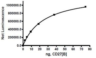 Recombinant human CD70 protein (Active) is a Human Fragment protein, in the 39 to 193 aa range, expressed in HEK 293, with >=90% purity and suitable for SDS-PAGE, FuncS.