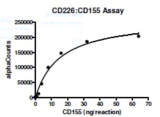 Recombinant human CD226 protein (Active) (Biotin) is a Human Fragment protein, in the 19 to 247 aa range, expressed in HEK 293, with >=90% purity and suitable for SDS-PAGE.