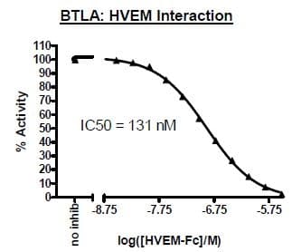 Recombinant human TNFRSF14/HVEM protein (Active) is a Human Fragment protein, in the 37 to 202 aa range, expressed in HEK 293, with >=90% purity and suitable for SDS-PAGE, FuncS.