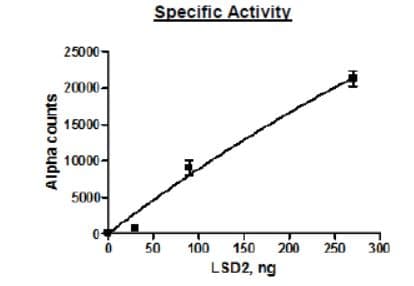 Recombinant human LSD2 / AOF1 protein (Active) is a Human Full Length protein, in the 2 to 822 aa range, expressed in Baculovirus infected Sf9, with >=90% purity and suitable for SDS-PAGE, FuncS.