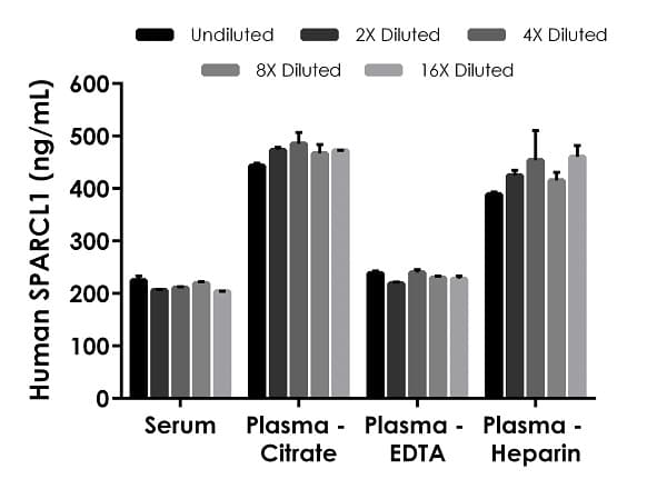 Human SPARCL1 ELISA Kit (SPARC-like protein 1) is a single-wash 90-min SimpleStep ELISA® for the quantitative measurement of Human SPARCL1 (SPARC-like protein 1) in Tissue Extracts, Heparin Plasma, Citrate plasma, Serum, EDTA Plasma samples.